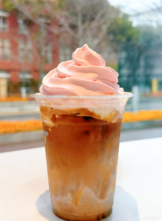 The first sip is to first lick off the cream topping. The sweetness and softness of the cherry melts in the mouth; then, when drinking the latte, the smoothness of the Italian espresso and the sweetness of the fresh milk blend perfectly, as if the falling cherry blossoms on Fengchu Road have been swallowed into the stomach.